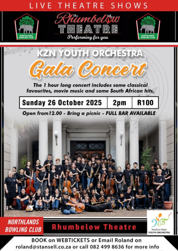 On Sunday 26 October the KZNYO will present their Gala concert at Northland’s Bowling club in collaboration with the Rhumbelow.