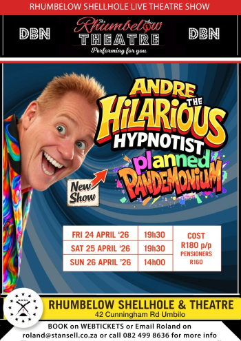 Get ready to laugh until your sides hurt as Andre the Hilarious Hypnotist, one of South Africa’s most beloved comedy hypnotists, brings his unique blend of comedy and hypnosis to The Rhumbelow Theatre.
